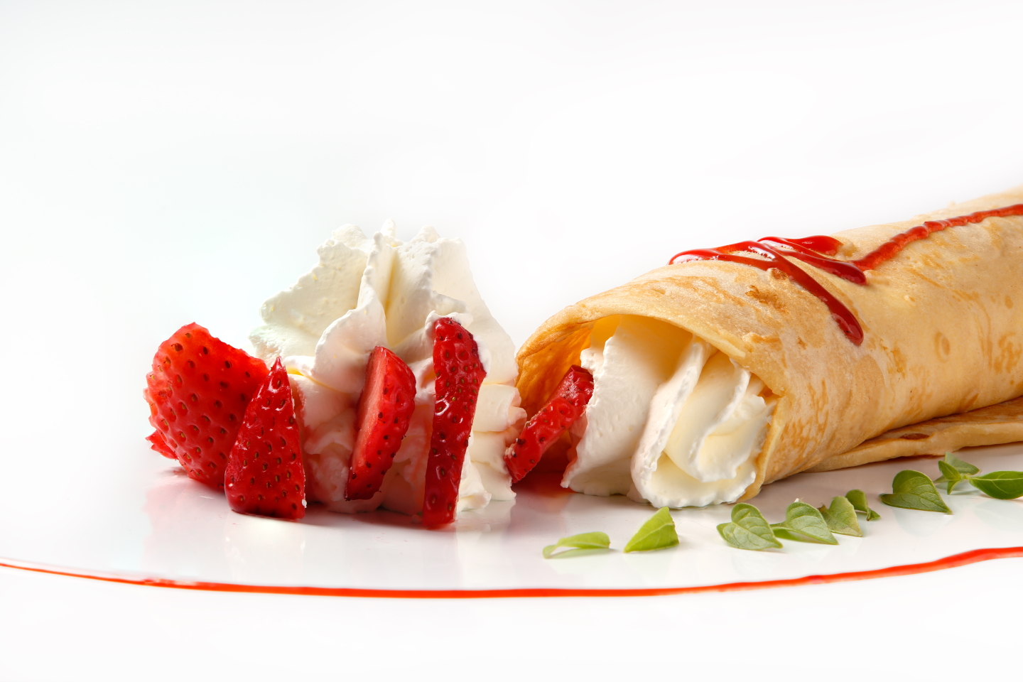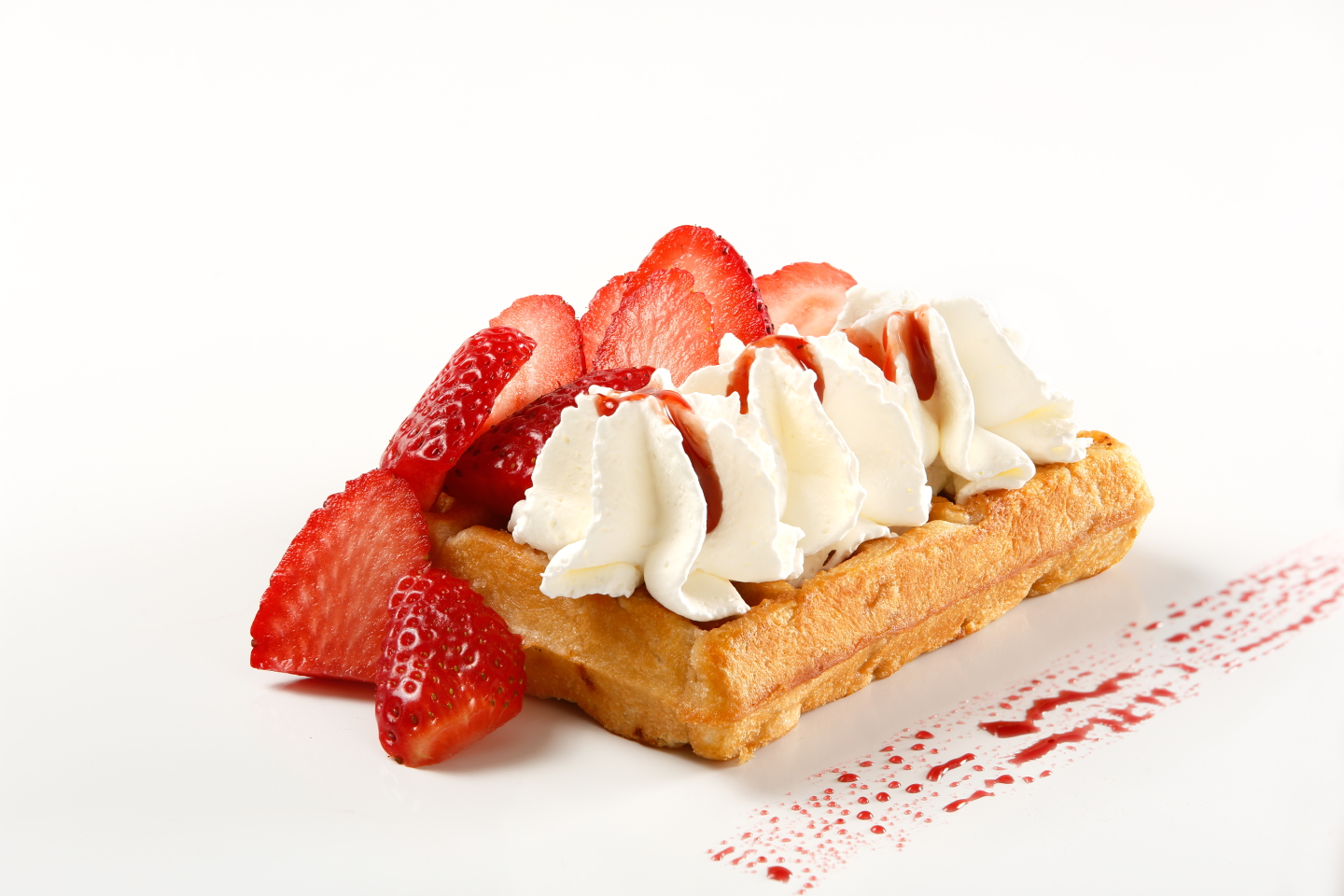 Helado de fresa y nata montada con sirope de fresa.