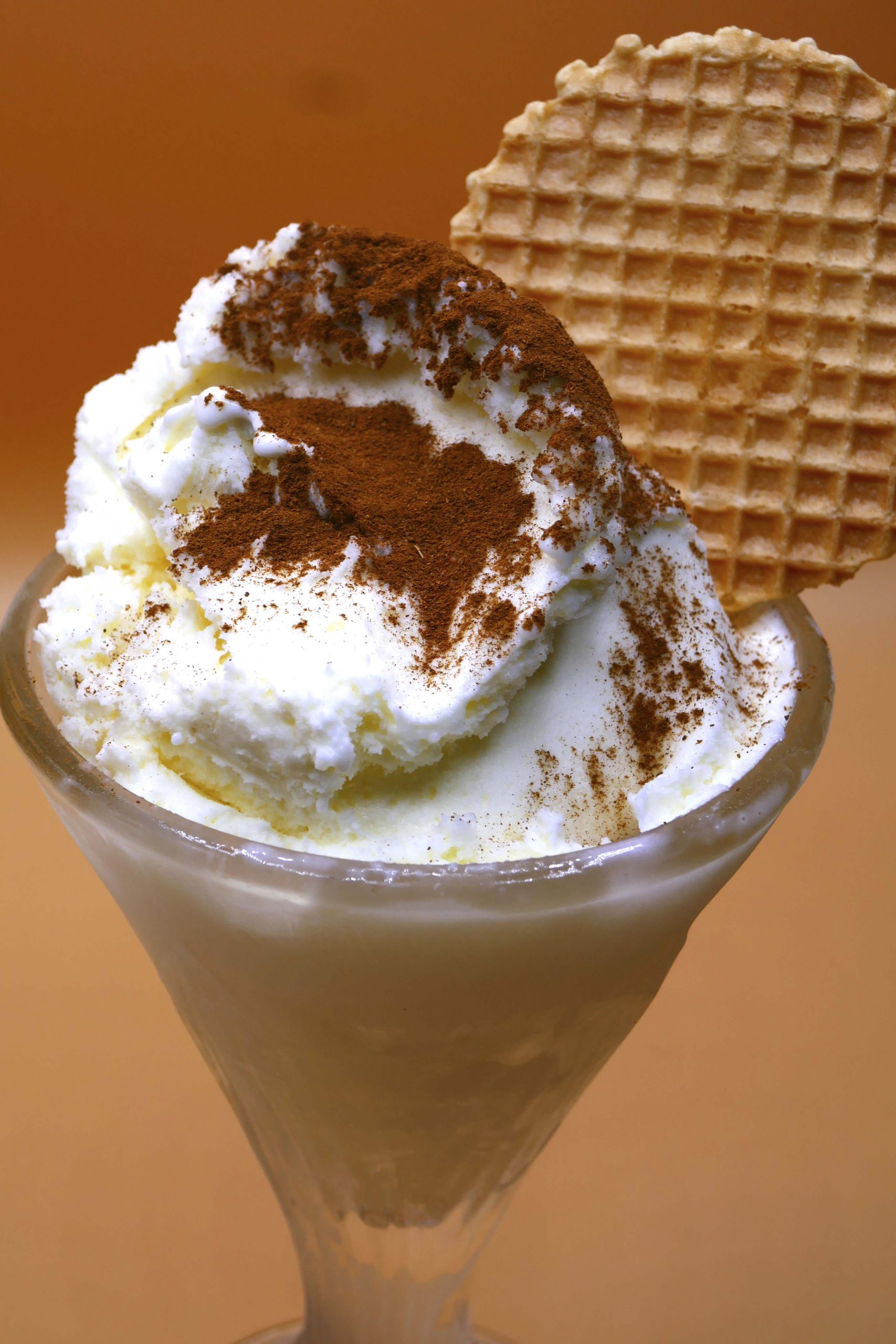Licor de Bayleis con helado de mantecado, nata montada y cacao.